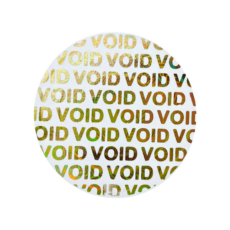 Printed on shiny,rainbow-effect vinyl. Also known as product security labels.